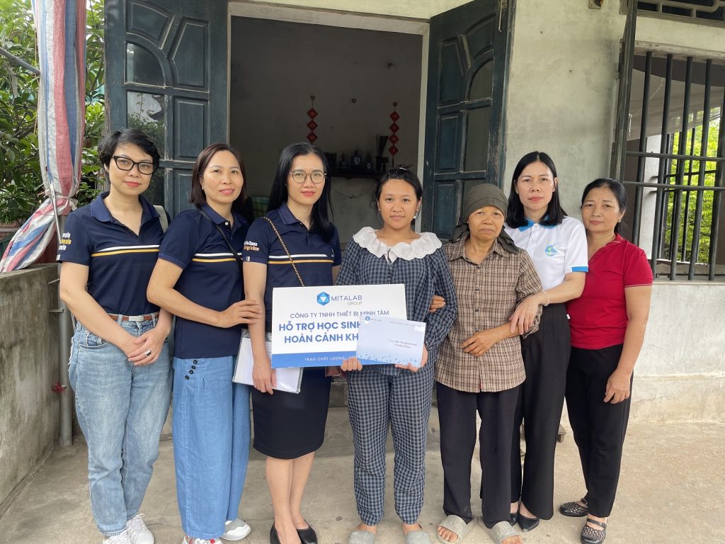Sang thôn Đại Thành, xã Kiến Xương thăm cháu Bùi Thị Kim Oanh (sinh năm 2011, đang học lớp 9); cháu mồ côi bố mẹ từ khi cháu mới sinh ra, bố mẹ cháu mất do tai nạn. Rất may cho cháu được bà Bùi Thị Sợi, sinh năm 1967, nhận cưu mang cháu, bà Sợi làm ruộng, thu nhập thấp, bà Sợi nuôi cháu Oanh và mẹ đẻ đã hơn 95 tuổi, già yếu, ngồi một chỗ. Hiện nay, bà Sợi đang bị ung thư vú giai đoạn 3, hoàn cảnh gia đình vô cùng khó khăn. Khi Nhóm TT NVTL trao món quà của Công ty hỗ trợ cháu, bà Sợi súc động lắm, bà nói “Món quà của Công ty TNHH Thiết bị Minh Tâm đến với cháu và gia đình thật quý giá, thật đúng lúc và kịp thời, món quà thiết thực giúp cháu tự tin vươn lên trong hoàn cảnh đặc biệt khó khăn của gia đình”….